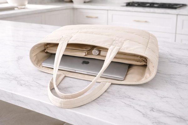 La Puffy Tote combina design minimal, morbidezza e spazio per tutto ciò che ti serve.